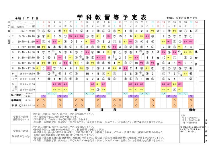 ・学科教習は予約制ではなく1教程以外は順不同で受けられます。