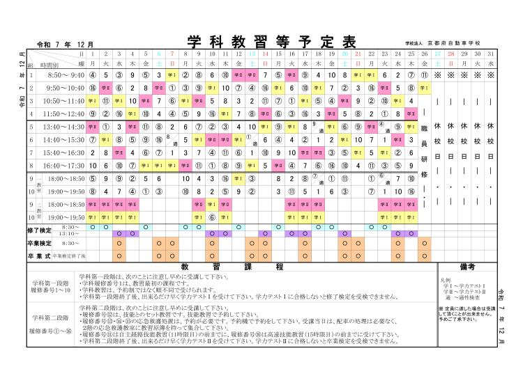 ・学科二段階終了後、卒業検定前に、学力テストⅡを受けて下さい。